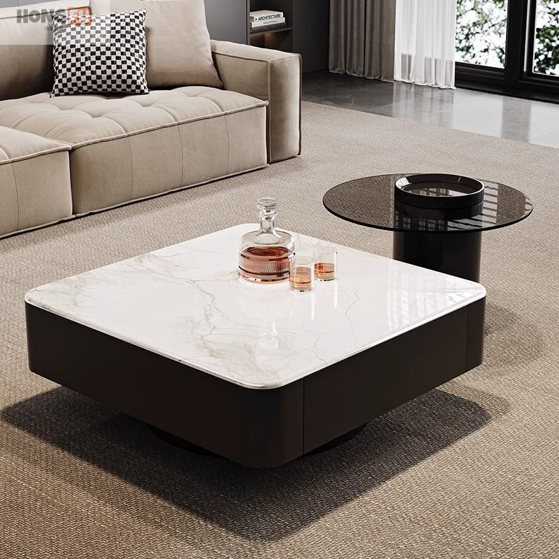 イタリアの新しいスタイルのライトラグジュアリーシンプルなリビングルームホーム小さなアパートハイエンドデザイン微結晶石正方形コーヒーテーブルの組み合わせ