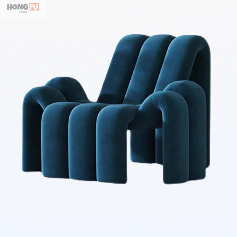 イタリアのモダンなわびさびベルベットライト高級ラウンジチェアリビングルームソファチェアデザイナー特殊な形状のモダンなシンプルなシングルチェア