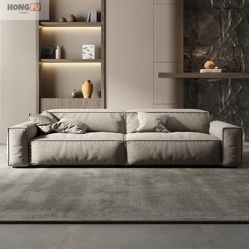 和風わびさび風綿麻生地ソファ組み合わせリビングルームストレート列3人掛けイタリアンミニマリストリネン豆腐ブロック