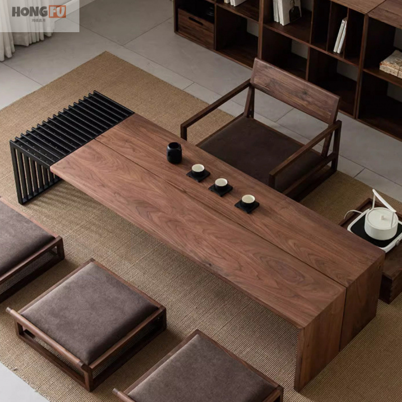 Honfu 新しい日本茶テーブル無垢材畳茶テーブル宋家具モダンな禅フロアローテーブルリビングルームティーテーブル