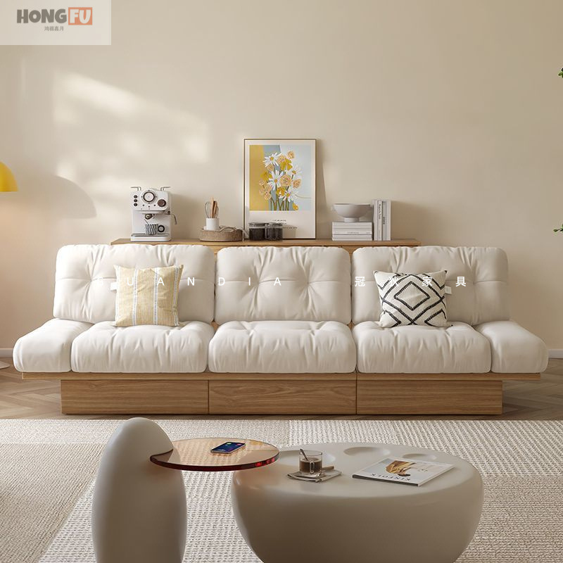 クラウドクロスソファ小さなリビングルーム無垢材スタイルモダンシンプルクリームスタイル日本製ログフロア収納ソファ