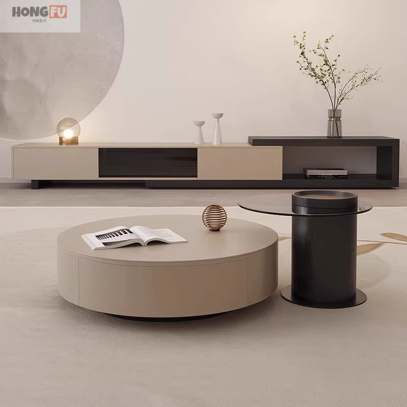 中世スタイルの新しい 2025 イタリアのモダンなシンプルなコーヒーテーブルの組み合わせリビングルームウォールナットカラー引き出し収納正方形
