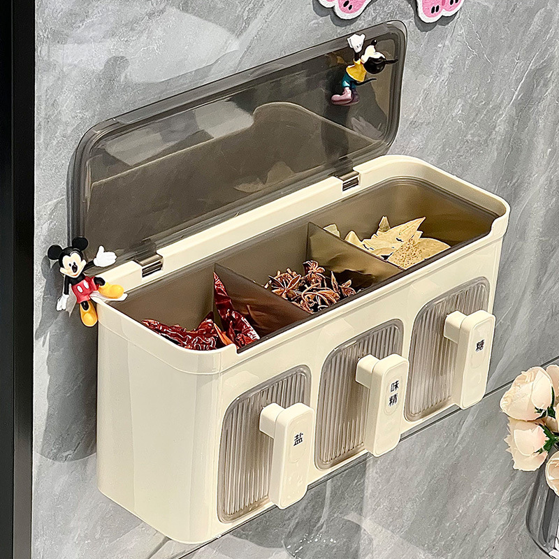 キッチン調味料ボックス家庭用MSG調味料ボックス調味料瓶壁掛けマルチグリッド防湿収納スパイスボックス