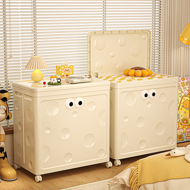 クリームホワイトの大容量家庭用防塵防湿収納ボックスフリップホイール折りたたみデザイン収納キャビネット整理ボックス