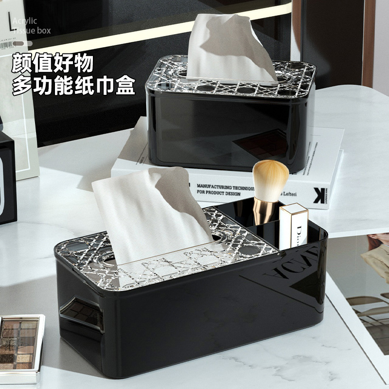 ティッシュケース軽豪華高級感デスクトップ収納ケース茶卓リモコン多機能収納一体デスクトップ引き出し箱
