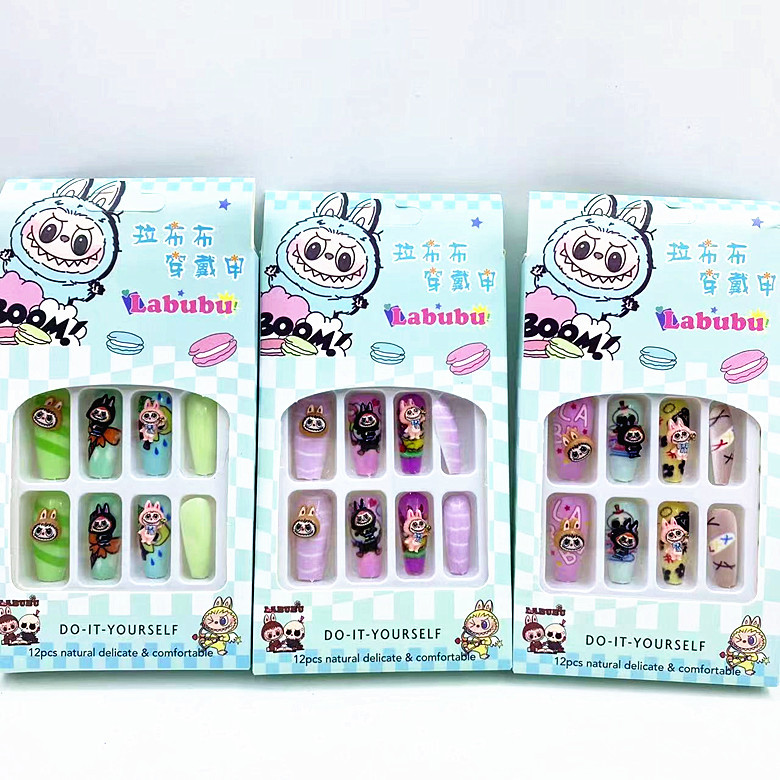 新しいモデルは長いネイルアートを着てかわいいアニメの偽爪を貼って、立体サンリオ爪を取り外して卸売りすることができます