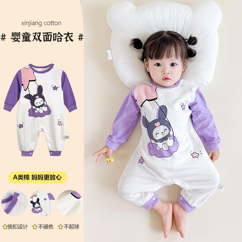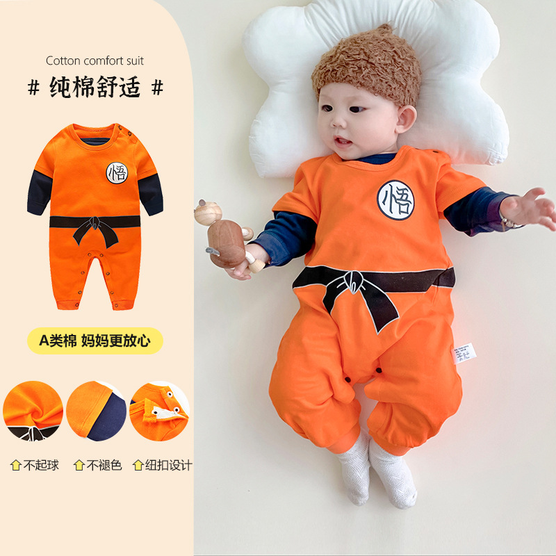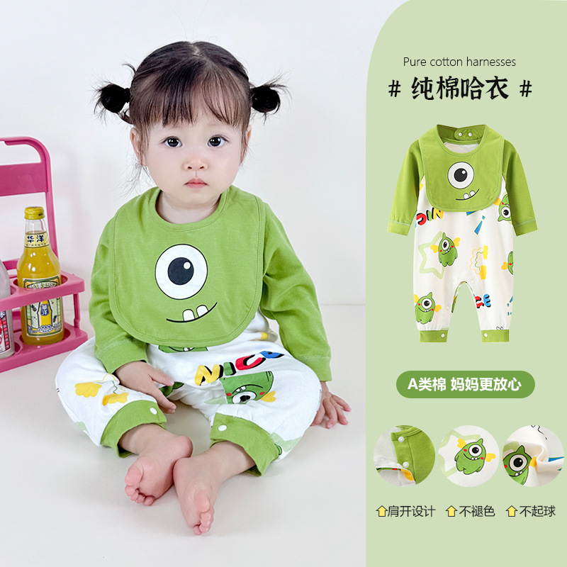 子供用のかわいい漫画風両面つなぎ服(よだれかけ付き)
