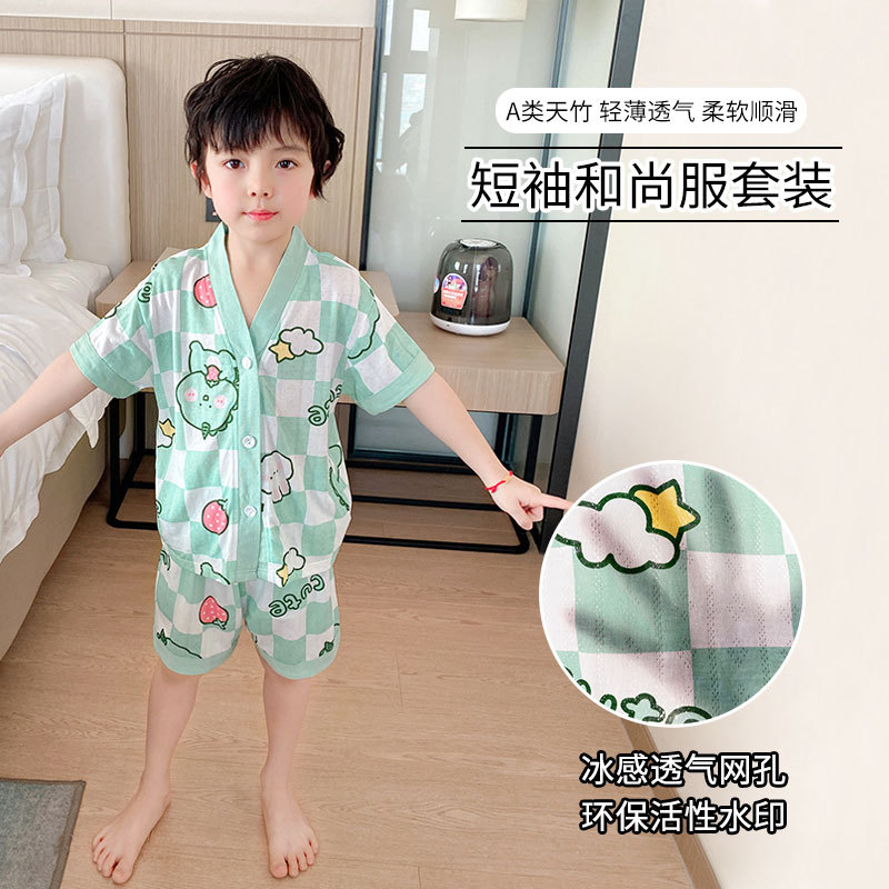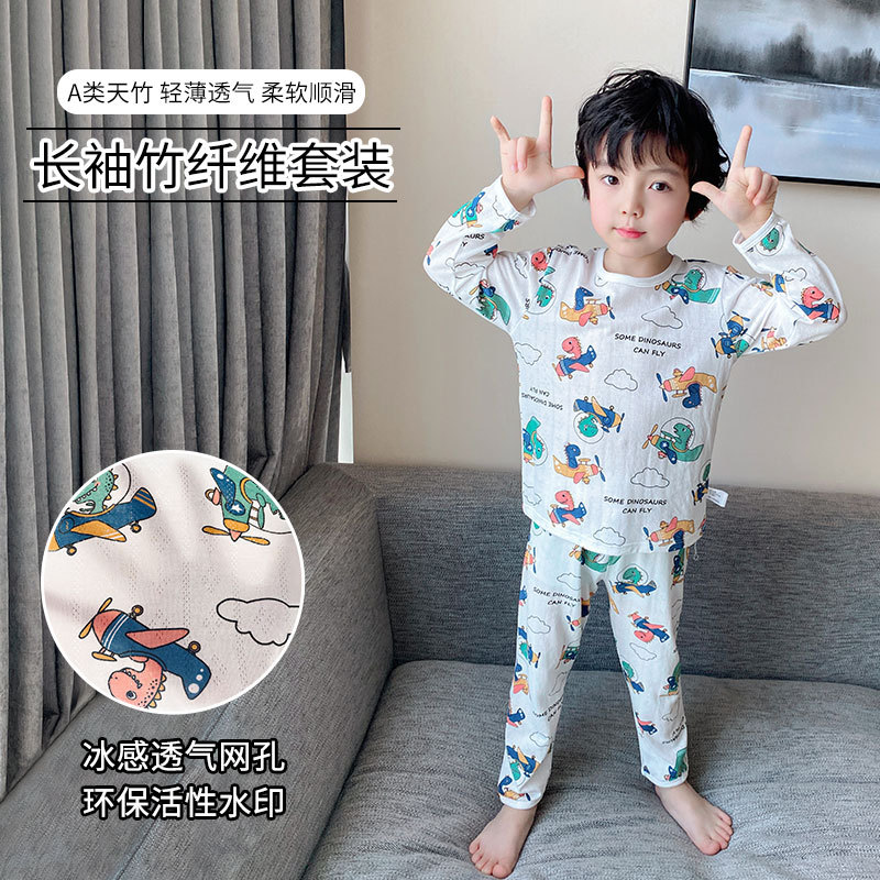 子供用エアコンセット竹繊維の薄っぺらな通気性のある男の子と女の子の下着カバー3-12歳2023夏の新作
