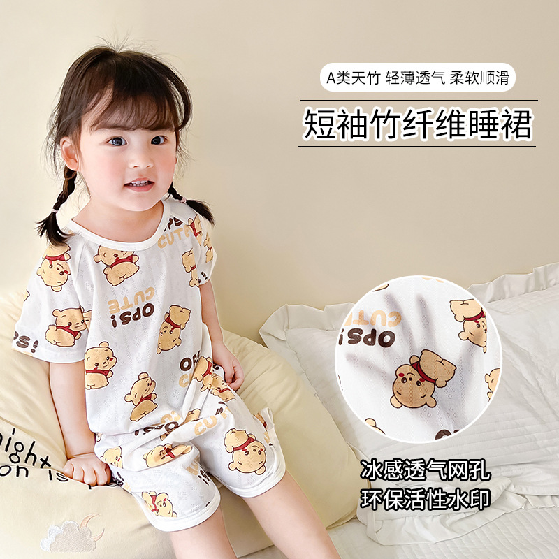 子供のワンピースの寝スカートの男の子の女の子の家の服のパジャマの竹の繊維の薄い通気性の2023年の夏