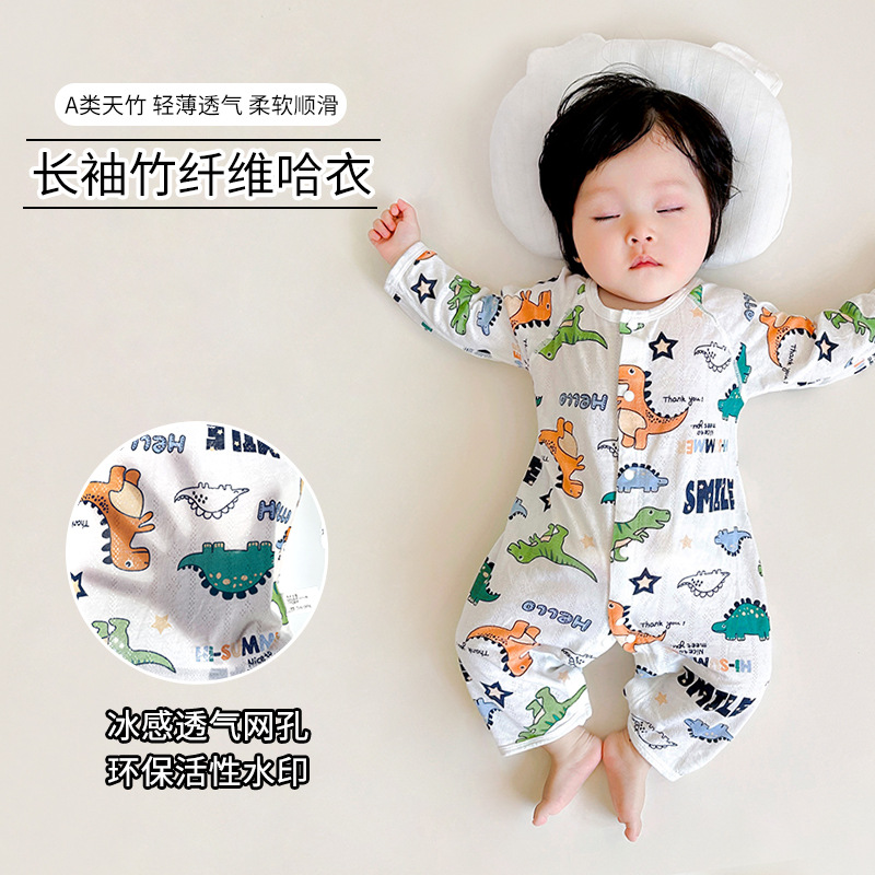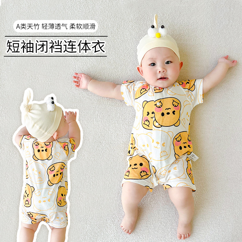 新生児半袖連体服春夏の薄い竹繊維の服は0-3歳の男の子の赤ちゃんの女の宝の2023年の夏に登ります。