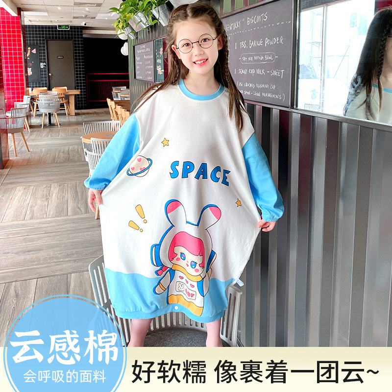 親子で楽しめる秋冬用のかわいい漫画風韓国風両面純綿ナイトガウン