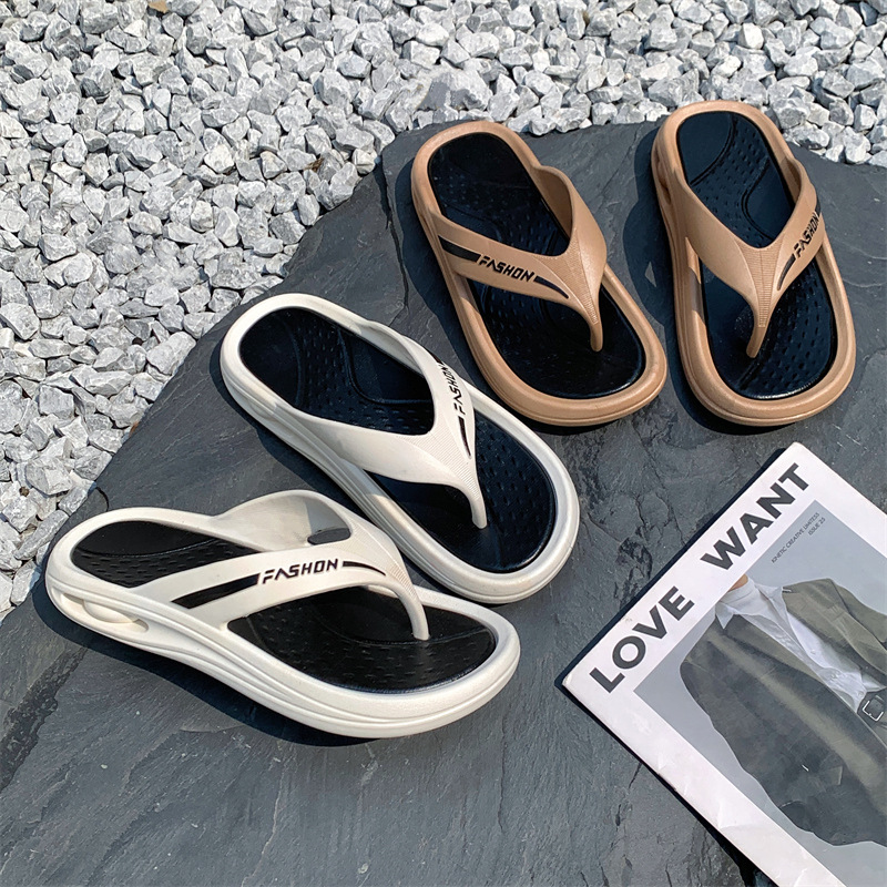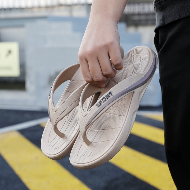足を挟んで人の字を引きずって夏の新型の潮流を引きずってスリッパの厚い底を着て指の室外の男性の砂浜の滑り止めの冷たいスリッパを露出します。