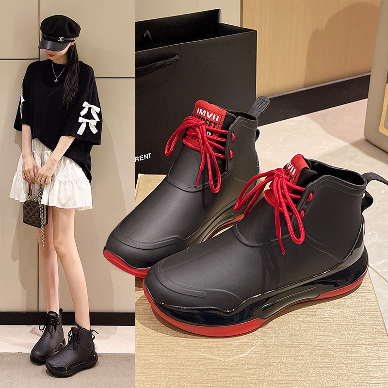 女性用のファッショナブルなレインブーツ、甘いレースアップのソフトソールのアウトドアカップル、多用途のウォーターシューズ、女性用の快適で滑り止めのキッチン作業靴