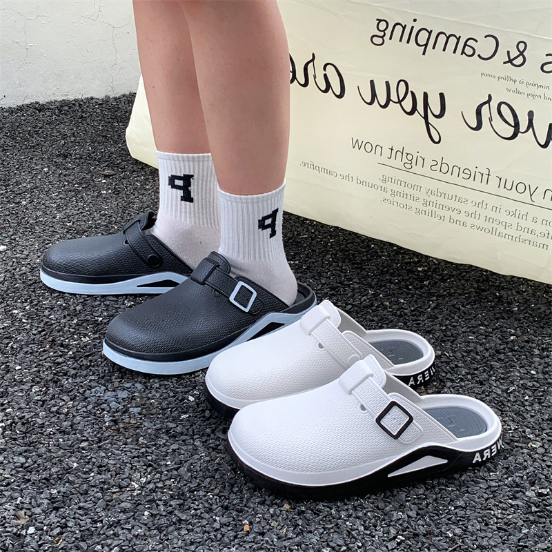 新しいハーフスリッパ、男性用夏用アウターウェア、ファッショナブルなサンダル、男子学生用怠け者靴、厚底滑り止めサンダル