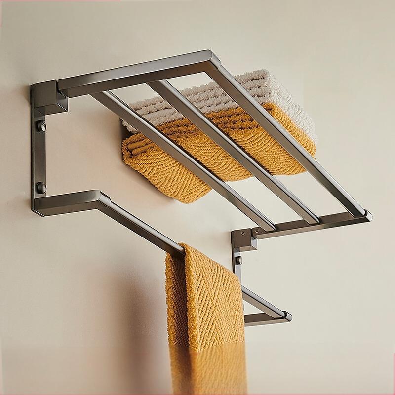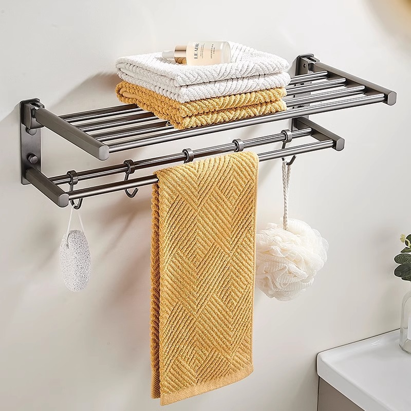 ガングレー浴室折りたたみバスタオルラック全銅タオルラック壁掛けホテルエンジニアリングシャワールーム収納ラック