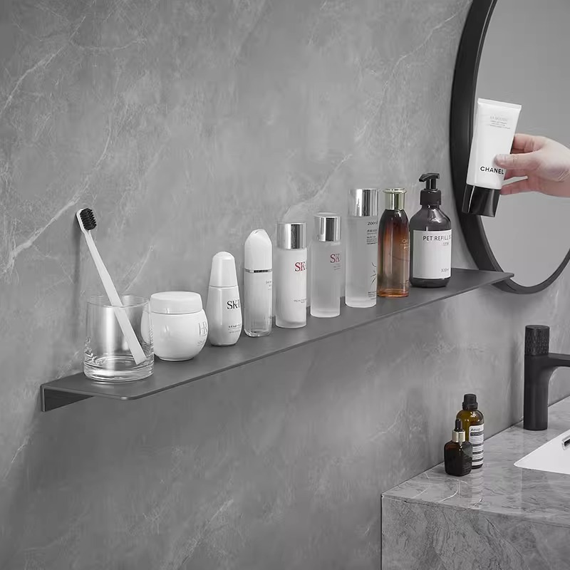 鏡の前に設置された非常に長く厚みのあるバスルーム収納ラック、ホテルのバスルームの化粧台、家庭用の壁に穴を開けたシングルパーティション