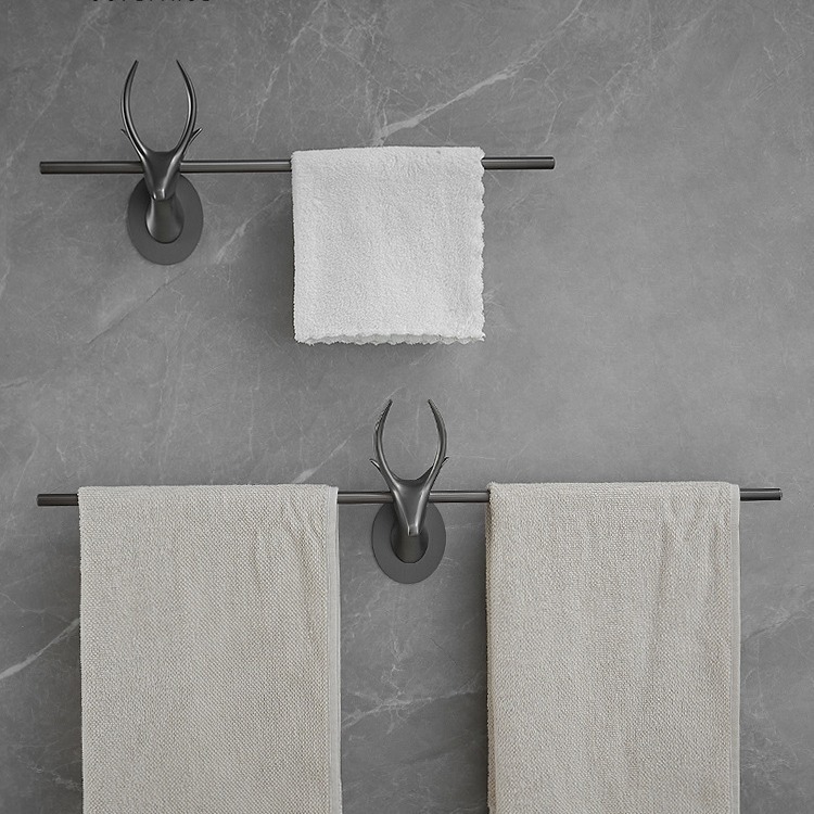 釘穴のないバスルームタオルラックシングルバートイレタオルバーバスルーム装飾クリエイティブ鹿ヘッド壁掛けバスルーム吊りバー