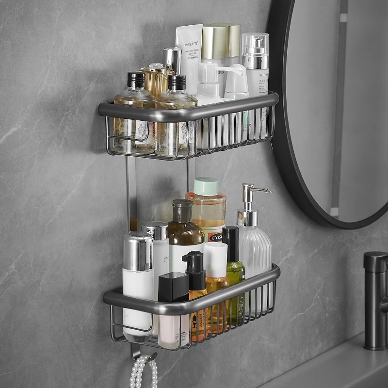 伸線銃灰全銅浴室棚シャワー室二重四方網かごトイレ壁掛け式収納棚