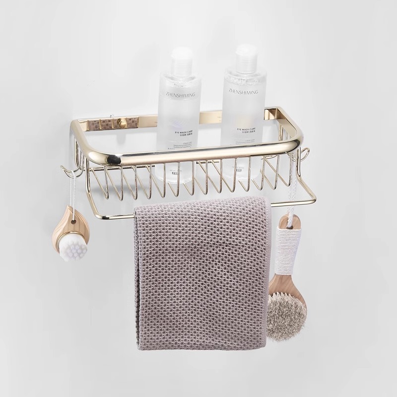 金全銅角青単層浴室物置棚シャワールーム風呂場壁掛け四方網籠ポール付き収納角籠
