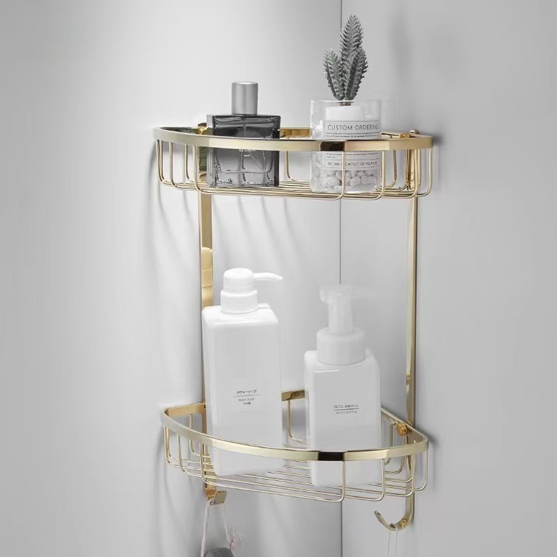 金色全銅浴室三角バスケットトイレ入浴露架トイレ角架シャワー室コーナー棚