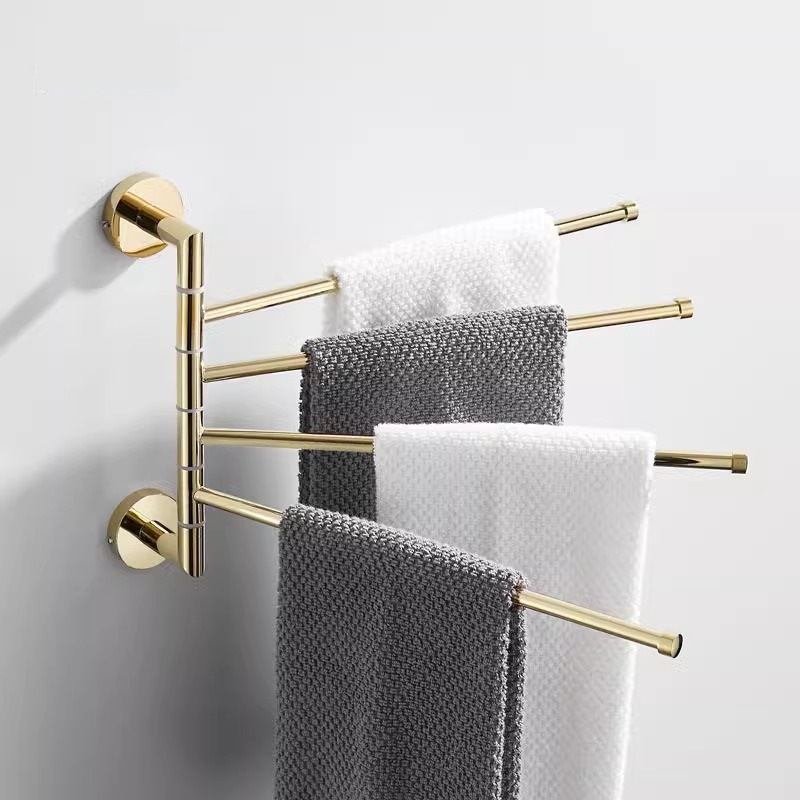 金色トイレ回転タオルラック全銅創意活動タオル掛け棒穴なし浴室多棒棚