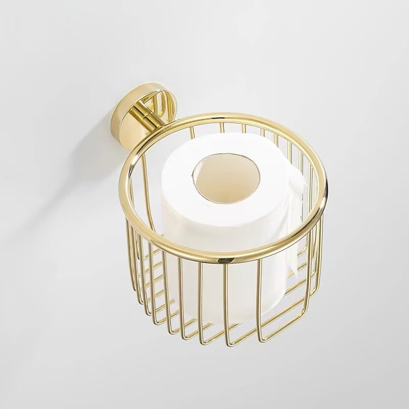 全銅の金色の軽い豪華な紙かごのトイレのティッシュ棚は穴を開けないでください。
