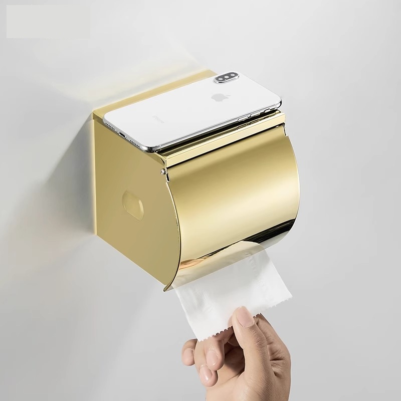 トイレットペーパーゴールドステンレス製トイレットロール紙箱穴なしペーパータオルラックトイレ防水壁掛け式ティッシュボックス