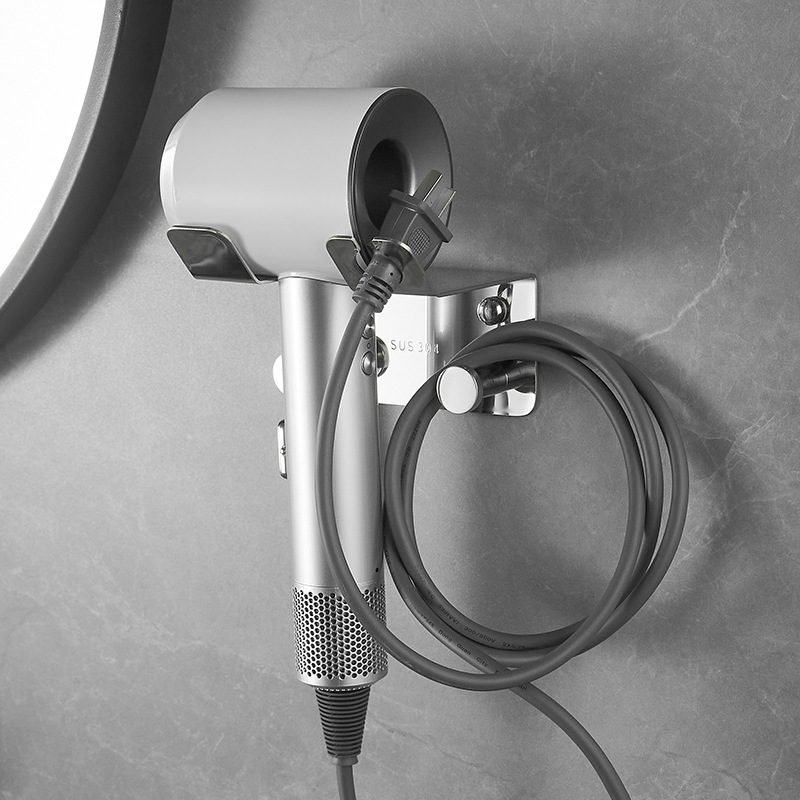 ヘアドライヤーラック、穴あけ不要、バスルームヘアドライヤーホルダー、バスルーム壁掛けステンレス製収納ヘアドライヤーラック