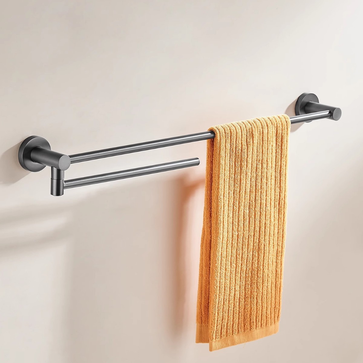 ブラッシュドガングレー全銅回転タオルラックパンチフリーバスルームバスルーム可動タオルバーバスルームバスタオルラック