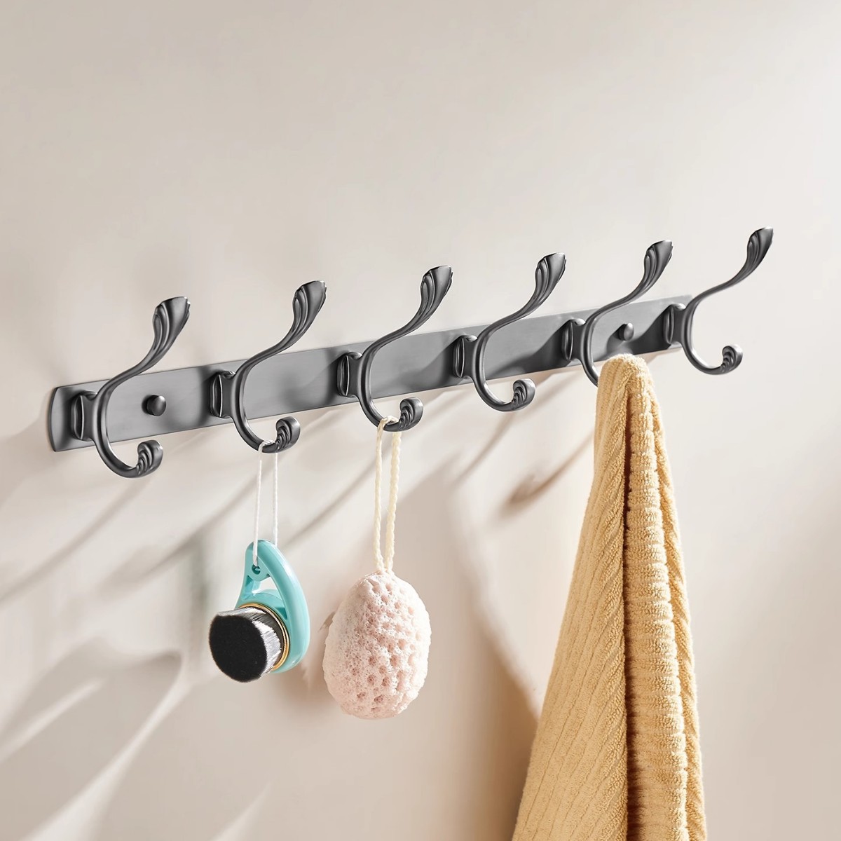 ガンアッシュフィッシュテールフック、コートラック、壁掛けバスルームコートフック、列フック、玄関ドアコートラック