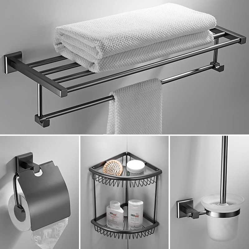 ガンメタルグレーの壁掛け式バスルームタオルバー、トイレブラシ、シングルタオルバー、タオルハンガー、6点セット
