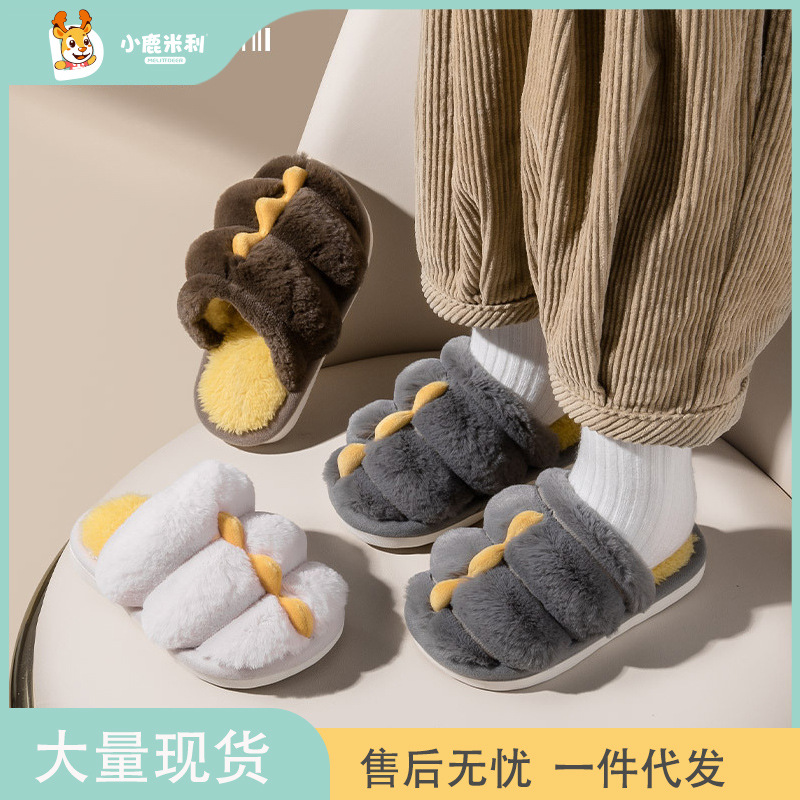 鹿米利子供綿スリッパ家庭用卸売り冬アニメ家ぬいぐるみスリッパ赤ちゃん綿靴毛スリッパ