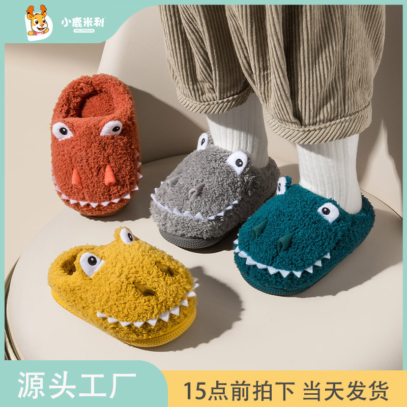 鹿の米利の子供の綿の靴の男の子の女の子の恐竜の保温の毛のスリッパの赤ちゃんの漫画の綿のスリッパは国境を越えて卸売りします。