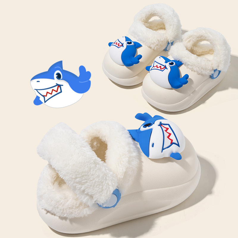 子供の綿の靴の卸売りの男の子と女の子の赤ちゃんの漫画の室内のサメの綿は冬にベルベットして保温のスリッパを厚くします。