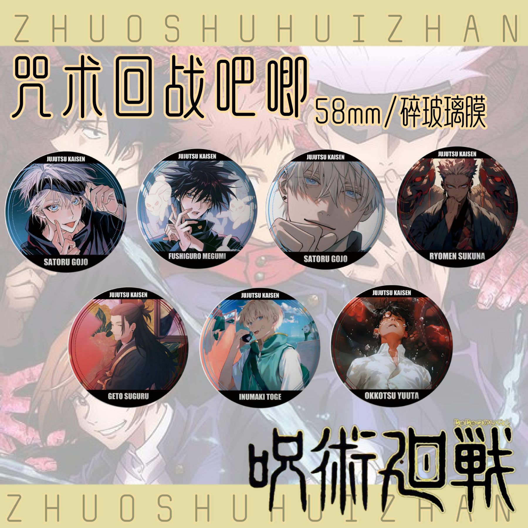 呪術回戦レーザーバッジ割れガラスバー五条悟虎杖悠仁伏黒恵ブリキ58mmバッジ