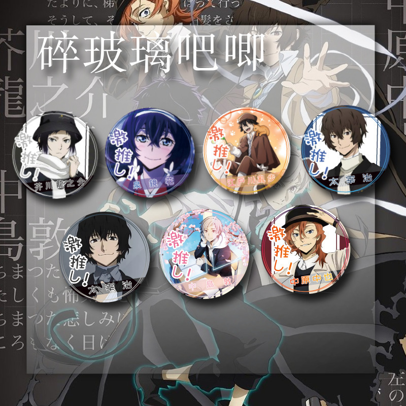 文豪野犬バーバッジ58mmブリキレーザー割れガラスバッジ中島敦太宰治アニメdiy
