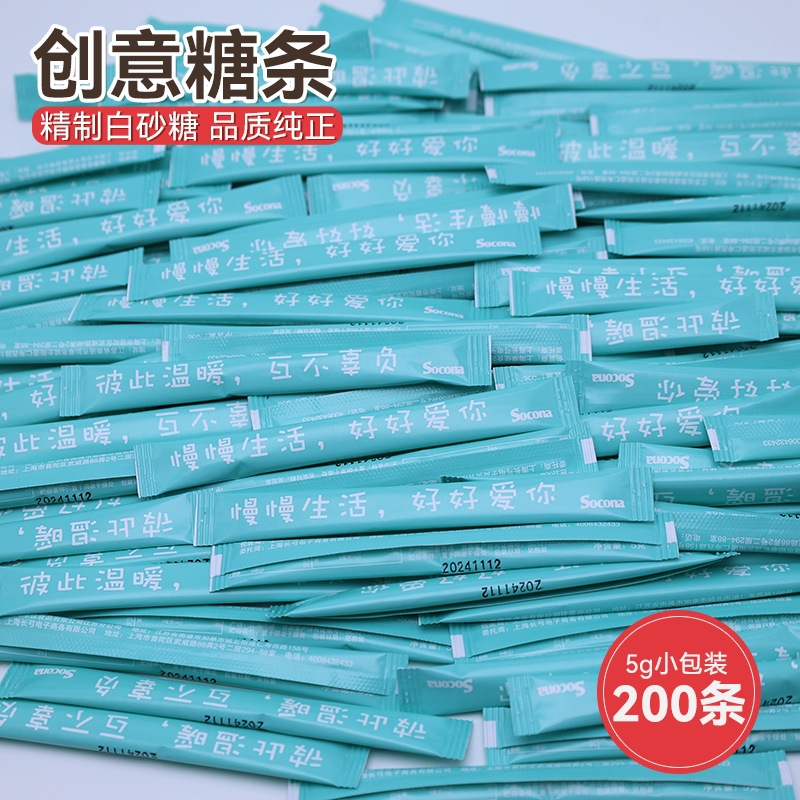 SOCONAブルークリエイティブシュガーバーコーヒードパートナーの方糖白砂糖包調糖5g * 200本独立小包装