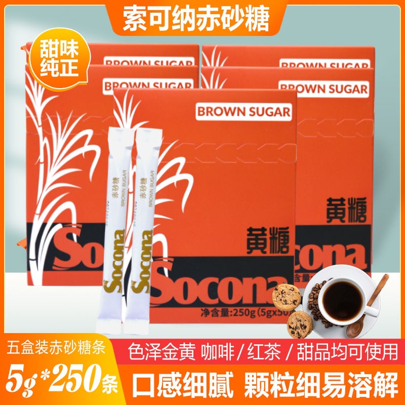 Socona黄条糖赤糖コーヒーパートナー金黄糖包白糖専用調糖5g * 50条/箱入り