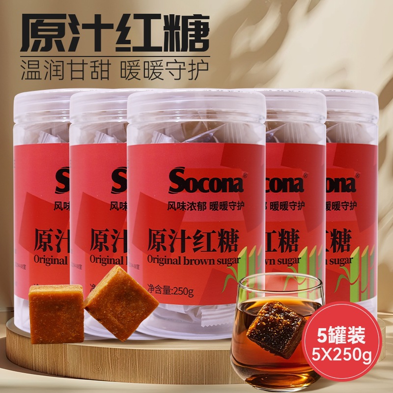 SOCONA原汁紅糖塊250g * 5缶純正手作りサトウキビ原味紅糖塊独立小包装