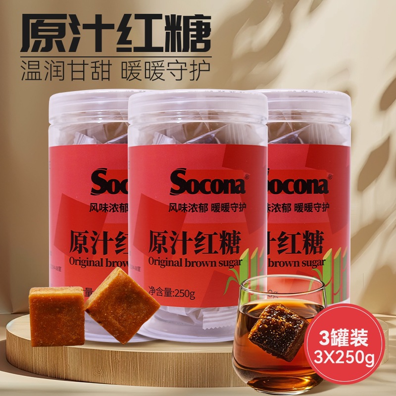 SOCONA原汁紅糖塊250g * 3缶純正手作りサトウキビ原味紅糖塊独立小包装