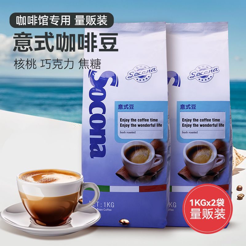 SOCONAブルーロゴ式エスプレッソ豆1KG * 2袋商用機専用新鮮焙煎油脂王