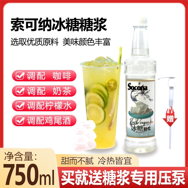 SOCONA竹サトウキビ氷糖シロップ750mlコーヒーミルクティー店果物茶手作りレモン専用シロップ商用