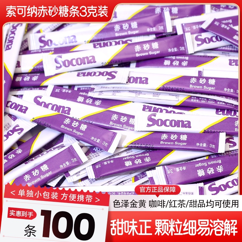Socona赤糖糖包コーヒー豆乳専用黄糖包少糖微甘調糖3g * 100本小包装