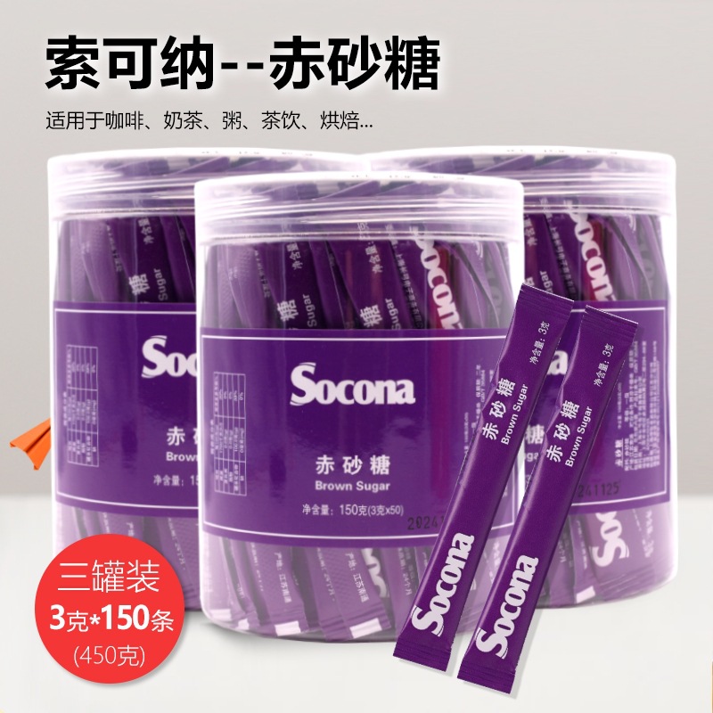 Socona赤砂糖砂糖パック3g * 150本三缶調コーヒー豆乳専用黄糖少糖微甘小包装