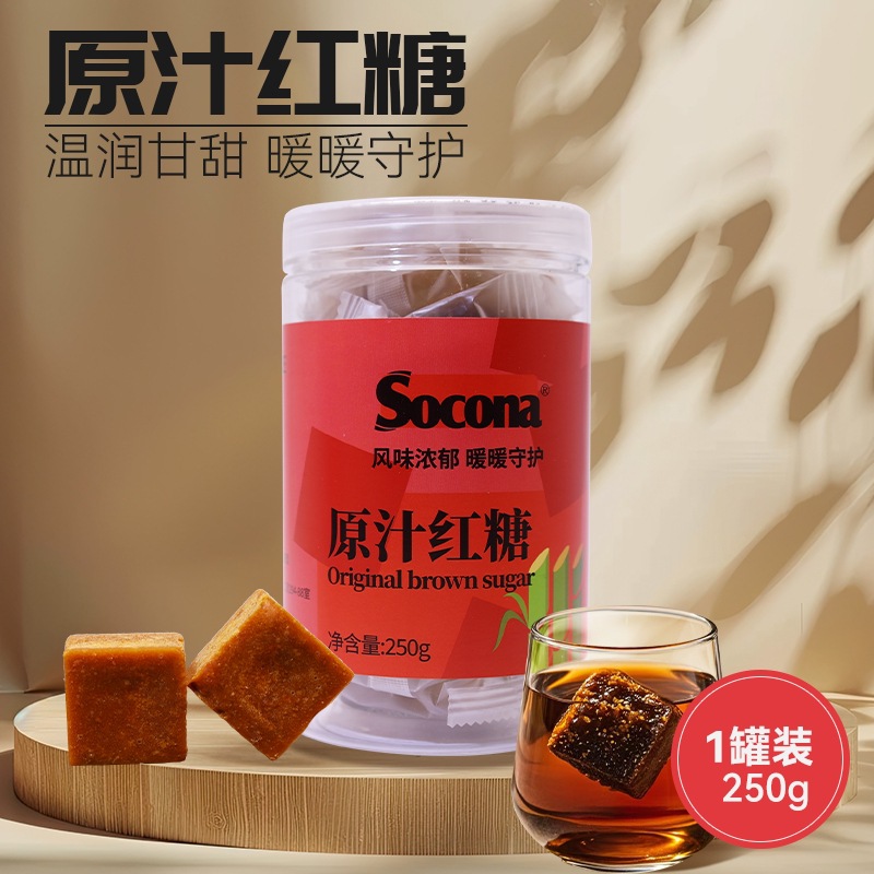 SOCONA原汁紅糖ブロック250g缶は純粋な手作りサトウキビ原味紅糖ブロック独立小包装です。