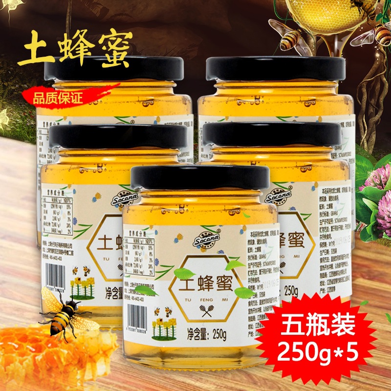 Socona土蜂蜜瓶は純粋な天然土蜂の巣蜜が自分で生産した小瓶携帯ケース250g * 5缶入りである
