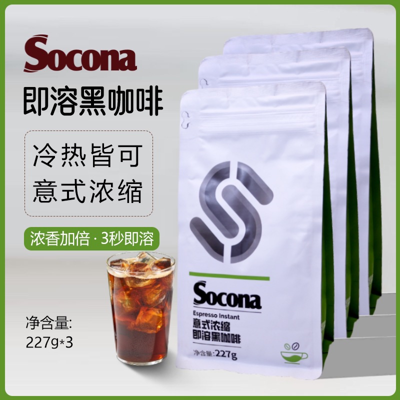 SOCONAイタリア式濃縮インスタント純黒コーヒー粉227g * 3袋アメリカ式提神生ココナツラテ冷熱双泡