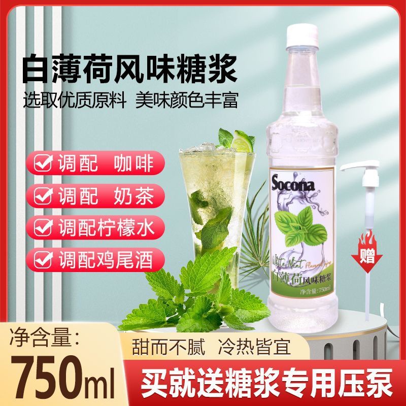 SOCONAホワイトミント风味シロップ750ml调コーヒーミルクティー専用调カクテルフルーツドリンク业务用