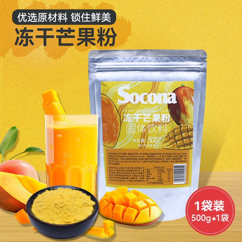 SOCONA冷凍乾燥マンゴー粉500g果物と野菜の粉はコーヒーのミルクティーを飲んでケーキのプリンのアイスクリームの原料を焼きます。