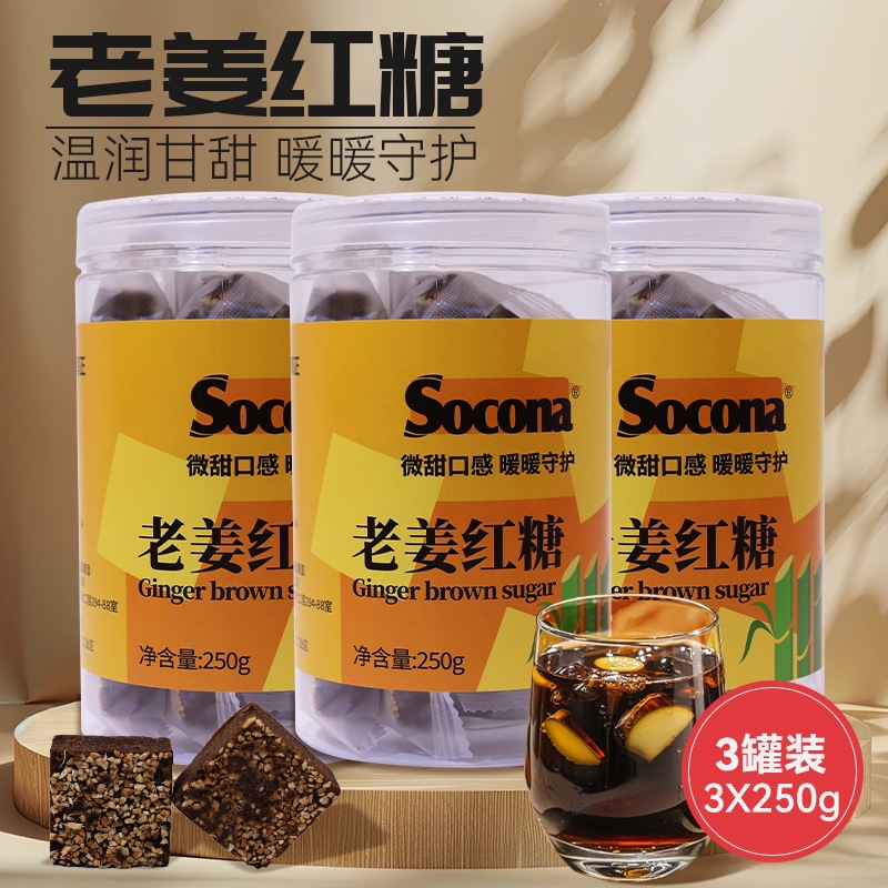 SOCONA老姜紅糖塊250g * 3缶純正手作りサトウキビジュース紅糖姜茶独立小包装